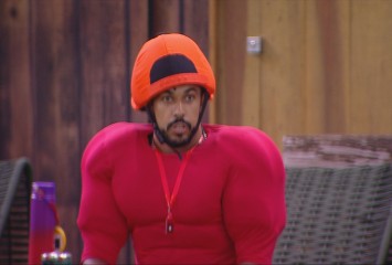 João Pedro está na cozinha do VIP, comendo, quando Gabriel, fantasiado do Castigo do Monstro, ac...